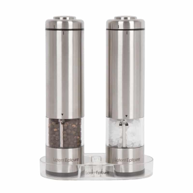 One of the most notable features is the built-in LED light, which illuminates your dish as you season, allowing for precise control over your flavoring. The set comes with two battery-operated mills, catering to both salt and pepper needs, and includes a convenient mill rest to keep your countertops clean.