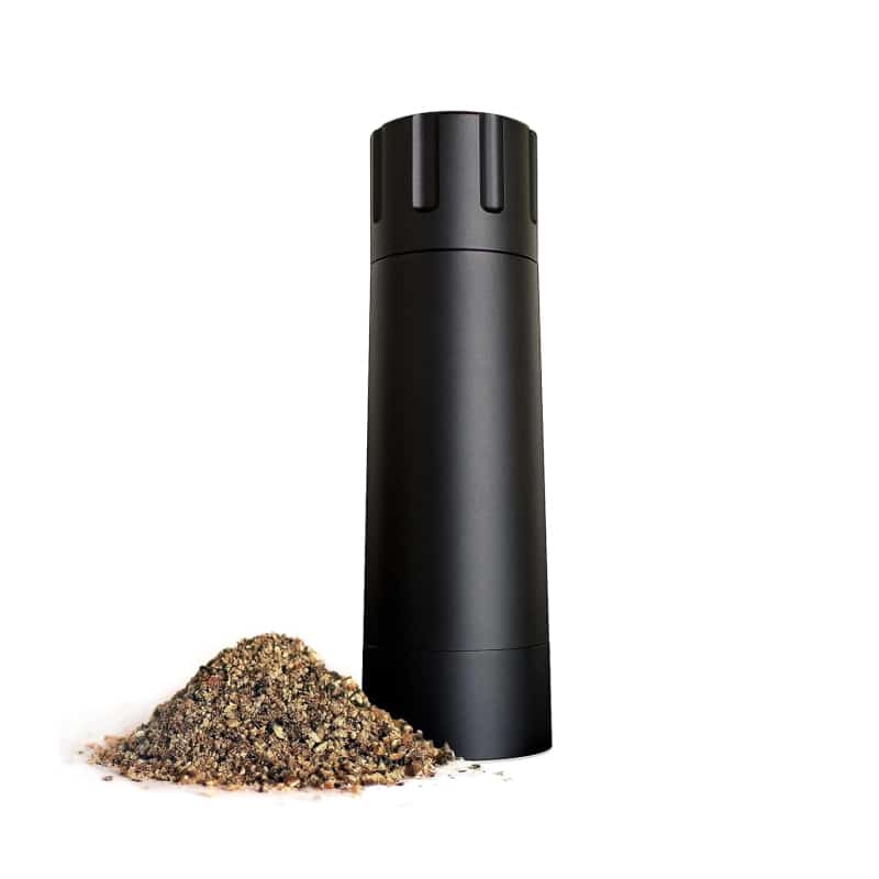Convenience is key with the Pepper Cannon. The quick-release top makes refilling a breeze, while the base cup allows for one-handed operation and convenient storage. The solid milled and anodized aluminum body not only looks sleek but also ensures long-lasting performance.